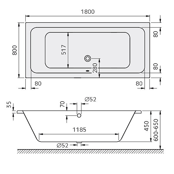 Badewanne mit Mittelablauf
